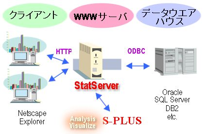 S-PLUS Enterprise Serverは、S-PLUSの本格的な解析能力をイントラネット・インターネットを通してエンドユーザに提供するためのサーバソフトウエアです。大規模ネットワークを利用する機関で、大きな威力を発揮します。