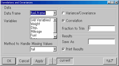 そうすると、Correlations and Covariancesというダイアログが出てきます。