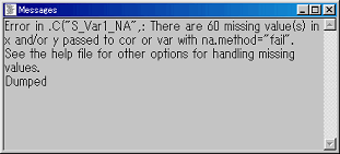 Variablesの選択ですが、このデータにはTypeというカテゴリ化ルナデータが含まれるので、統計量の場合と同様に(All Variables)とすると、エラーメッセージが出力され、実行ができません。