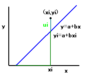 これはすなわち、直線の方程式 y = a + bx が与えられたとき、aやbの値をどのように決めれば残差の2乗和が最小になるかを求めることとなります。