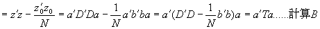 記号 ‾ の左辺が目的変数、右辺が説明変数です。数量化のため、左辺は年収の平均を引いたもの、右辺は説明変数を + でつないだものとします。右辺のマイナスは左辺で年収の平均を引いているため、定数項のないモデルにするためです。