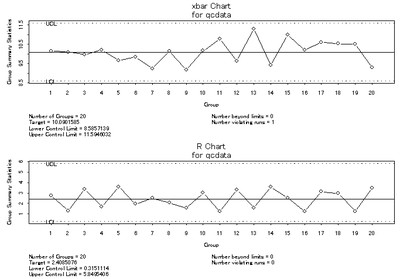 S-PLUS では、品質管理でよく利用するヒストグラムや累積チャート等はもちろん、各種管理図が描画可能です。これらの図のカスタマイズも容易にできます。