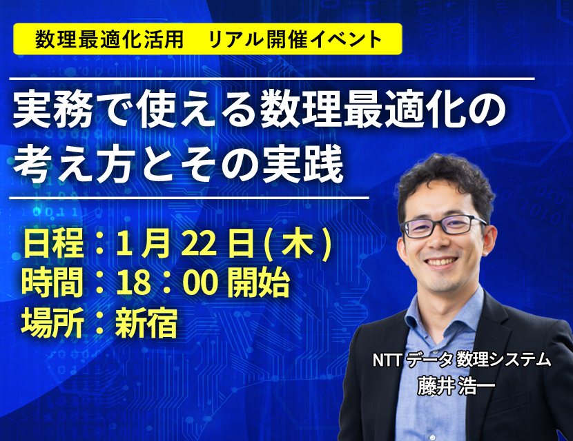 数理最適化を愛するすべての方に向けて、技術を使いこなすノウハウや、数理最適化活用プロジェクトの進め方のコツをお伝えします。