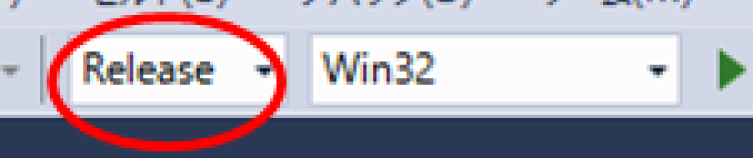 次にプロジェクトの構成を「Release」にする必要があります.下図のように,メニューバー下部にあるコンボボックスに「Release」と設定します.