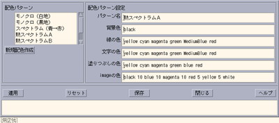 - グラフィックスの表示にmotifを利用している場合は、簡単にカラーに出来ます。