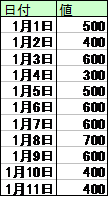 表:時系列の例 表:特定の長さの切り出し 表:移動平均