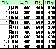 対象期間で指定されたデータを長さ分だけ切り出して、横に展開したデータを作成する 出力に含める場合はチェックする |