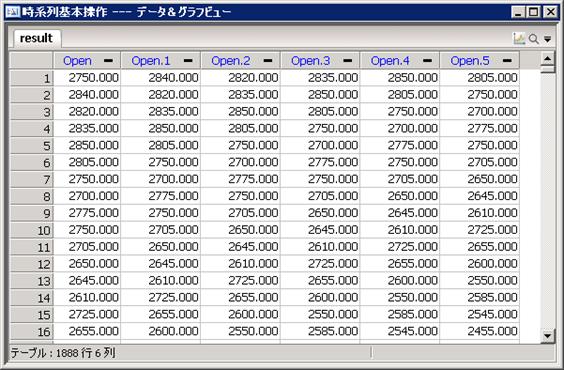基本操作アイコンでは時系列データの基本的な加工を行う。基本操作で行う処理は大きく分けて2通りである。1つは時系列を特定の長さの区間ごと切り出しである。例えば下左表を下中表のように変換する。この例では3日ごとの区間を切り出し、1月3日に対して3日分のデータを割り当てている。