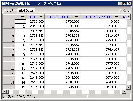 出力PlotData(プロットデータ作成指定時のみ出力される)は、パターンと、サンプルの最後の点をパターンの各線分の最後の点に合わせ、次々とずらして出力したテーブルとなる。